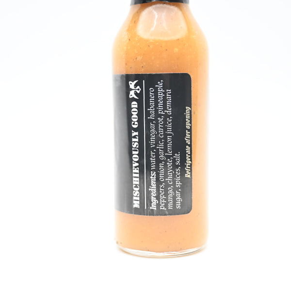 A symphony of sweet heat. The familiar sharp heat of habanero is perfectly balanced by the sweetness of the mango and pineapple. The sauce is accented by a subtle blend of rich Caribbean spices to round out the flavor.